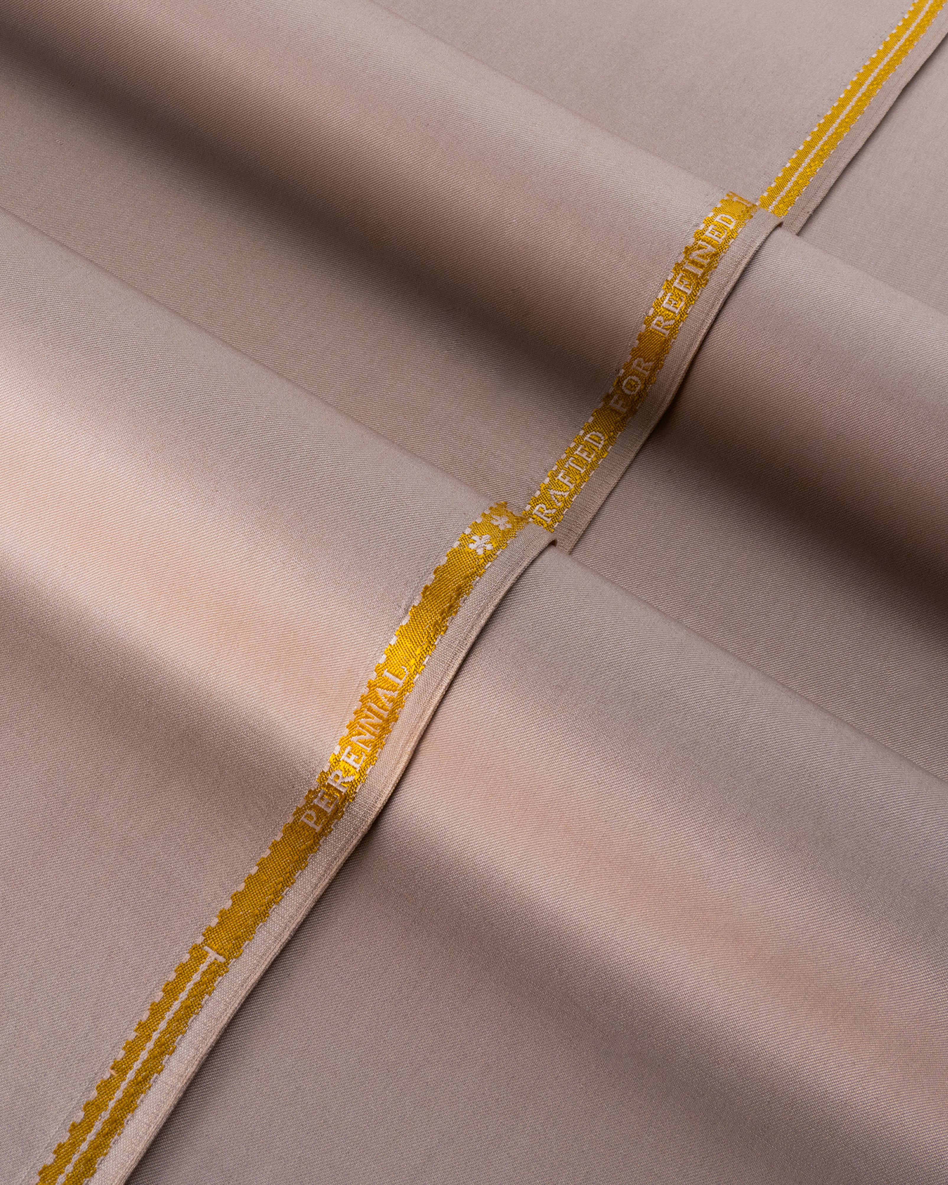 Crafted in collaboration with Saif Textiles, Perennial is built for tailoring that speaks in whispers but stands apart in any room. With a medium-to-heavy body and an exceptionally clean finish, the fabric closely emulates high-grade worsted wool, yet is designed with improved breathability and performance. This makes it ideal for ceremonial dressing, signature jackets, or classic sherwanis with enduring structure and comfort. Offered in limited runs with Mohtaram’s most exclusive packaging, Perennial is for connoisseurs — those who understand the language of cloth.
