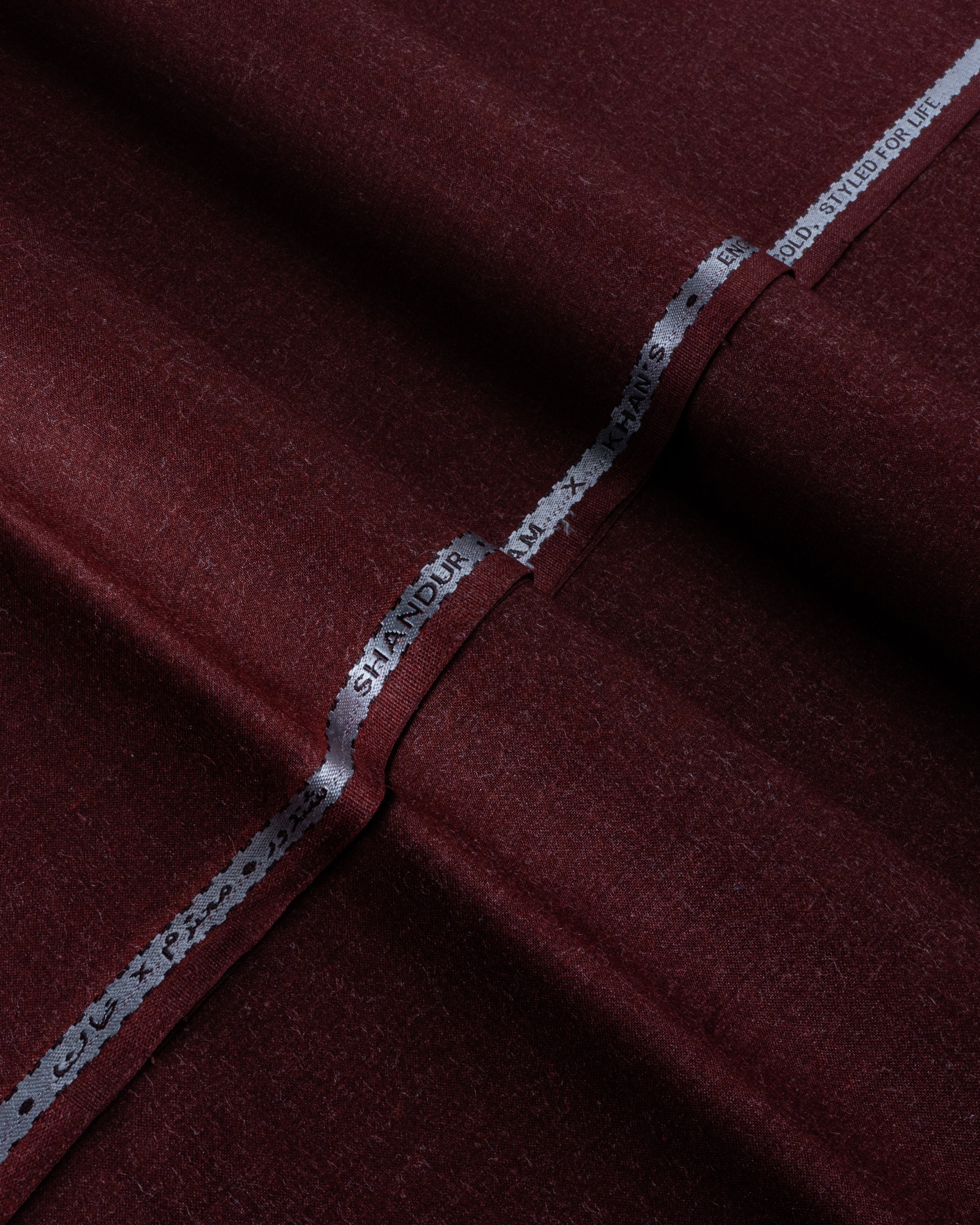 Shandur is a refined winter fabric crafted for those who value tradition with a modern silhouette. Designed in a classic 1x1 plain weave and finished to emulate the feel of worsted wool, it offers a soft, breathable hand with the visual presence of fine tailoring cloth. At 148 GSM, it balances lightweight wearability with a composed drape — perfect for layering in cooler temperatures. Composed from a technical blend of polyester, viscose, and acrylic yarns, this fabric is durable, sustainable, and timeless. Its earthy tones and muted neutrals reflect the rugged, silent beauty of the northern plains it is named after.
