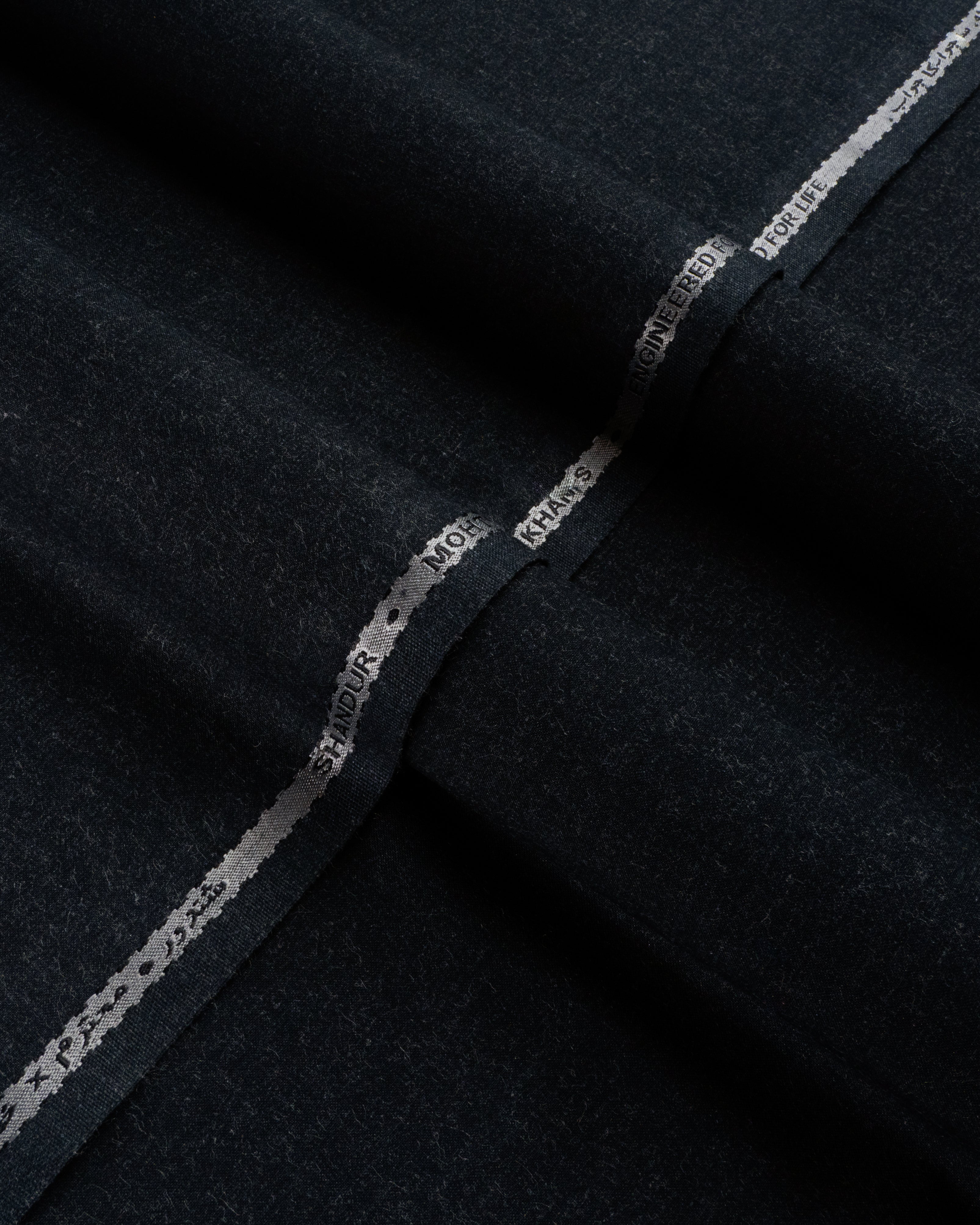 Shandur is a refined winter fabric crafted for those who value tradition with a modern silhouette. Designed in a classic 1x1 plain weave and finished to emulate the feel of worsted wool, it offers a soft, breathable hand with the visual presence of fine tailoring cloth. At 148 GSM, it balances lightweight wearability with a composed drape — perfect for layering in cooler temperatures. Composed from a technical blend of polyester, viscose, and acrylic yarns, this fabric is durable, sustainable, and timeless. Its earthy tones and muted neutrals reflect the rugged, silent beauty of the northern plains it is named after.