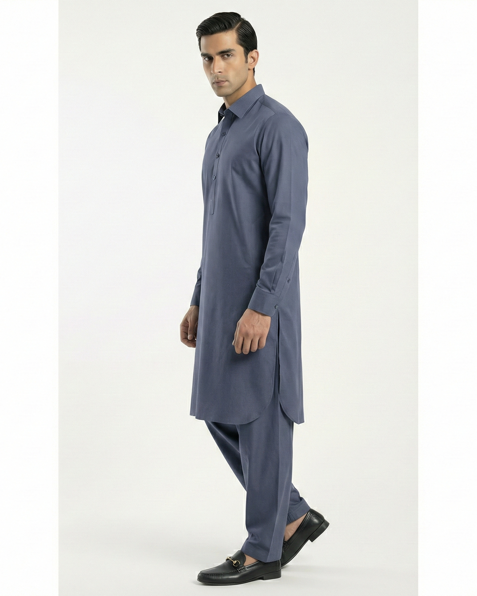 Woven in a classic 1/1 plain weave construction and crafted from 100% pure Egyptian cotton, this fabric is sturdy, breathable, and refined to the touch. Weighing in at just 105 GSM, it offers ideal year-round comfort, elevated by an easy-care and anti-microbial finish for long-lasting freshness and ease of wear. The surface is smooth with a quiet sophistication — making it suitable for both Eastern silhouettes and relaxed Western tailoring. Available in a broad palette ranging from winter neutrals to warmer transitional tones.
